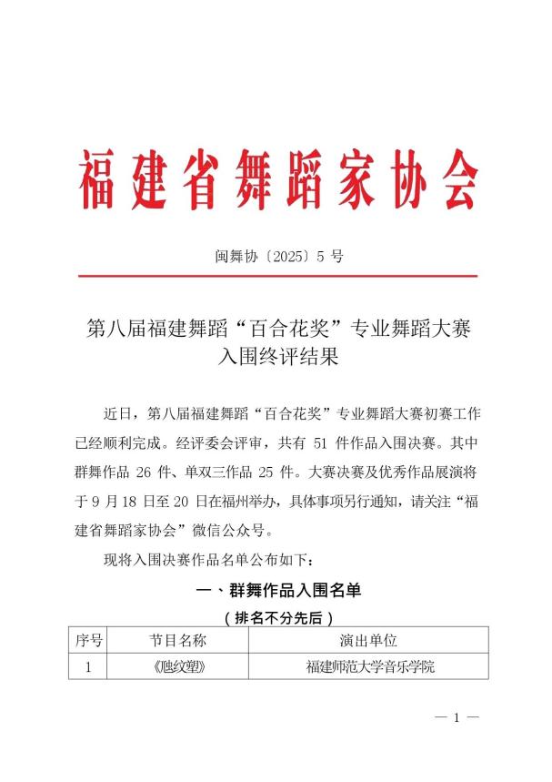 作为福建省唯一的专业舞蹈赛事,第八届福建舞蹈“百合花奖”专业舞蹈大赛自今年3月启动以来,省内各专业舞蹈院团、艺术院校、民营舞蹈机构及新文艺群体踊跃报名。9月18日至20日,51部作品、近500名舞者齐聚福州大戏院,展开精彩的“舞林”对决。