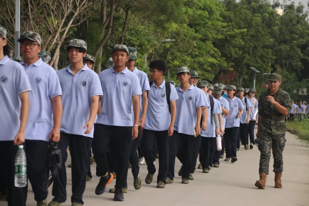 骄阳之下,操场上已涌动着蓬勃的朝气。新生们身着整齐的迷彩服,胸前的校徽在晨曦中熠熠生辉。他们迎着初升的朝阳列队集合,口号声划破寂静。铿锵的誓言里,是少年人独有的锐气与昂扬。