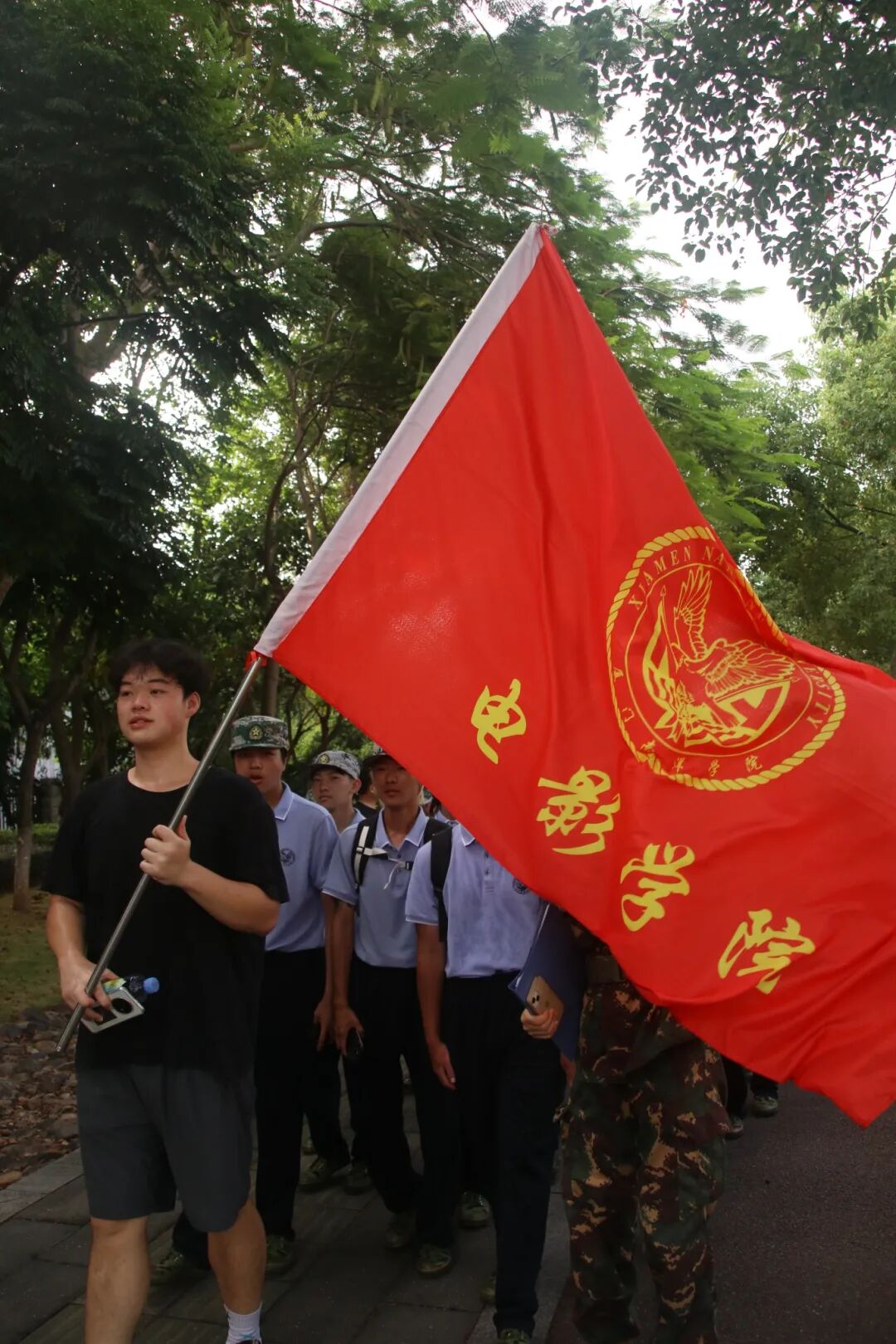 十公里拉练,不仅是对体能的考验,更是对意志的锤炼。队伍中,有人握紧了背包带,有人悄悄调整了鞋带,但无人退缩。当第一面旗帜扬起,他们以鹰隼试翼的姿态,踏上了这场青春的远征。