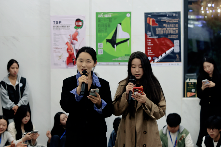 茶话会的温馨氛围尚未褪去,游戏环节“击鼓传花”让现场欢乐升级。随着鼓声响起,彩色花束在三国师生手中依次传递,大家屏气凝神、欢声笑语不断。鼓声骤停时,拿到花束的师生或即兴演唱、或呈现一段精彩的舞蹈表演,不分国界的互动让现场氛围推向高潮。简单的游戏打破了最后的生疏感,每一次传递都是一次默契的碰撞,每一个表演都是一次真诚的表达,欢乐在冬日校园里久久回荡。