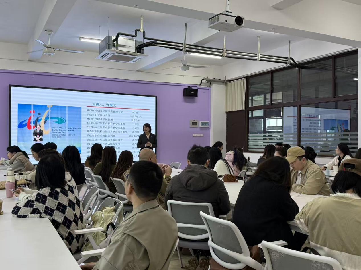 许爱云教授以《匠心深耕技能路 协同指导创佳绩》为题,详解技能大赛备赛策略。她结合“六化”训练模式,从赛项解读、团队构建、分阶段备赛等方面分享实战经验,强调以赛促教、以赛促学,助力学生锤炼专业技能与职业素养。