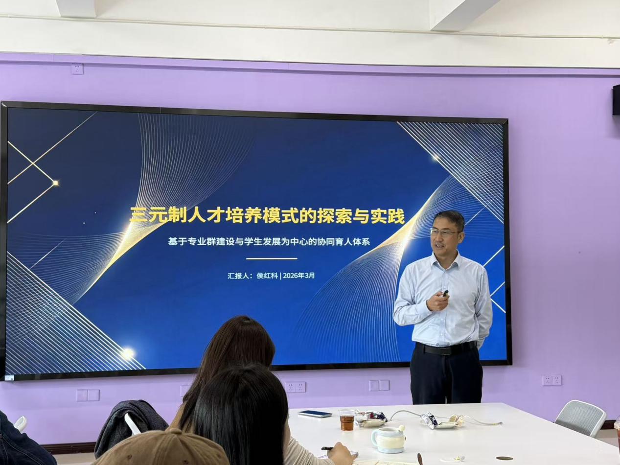 侯红科校长助理带来《三元制人才培养模式思考》分享,系统阐述学校以“学生发展为中心”的三元协同育人体系。他介绍了专业群建设背景、三元制核心逻辑及实践路径,详解学分制、教考分离等保障制度,强调通过校、企、生三方协同,实现教育与产业同频共振,培养复合型技术技能人才。