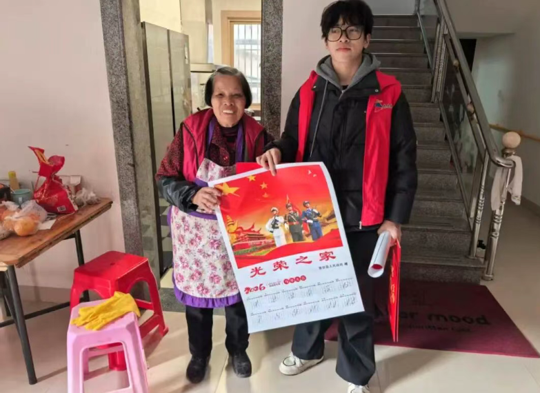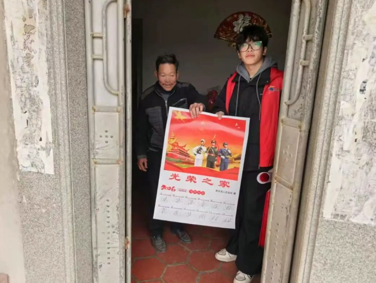 身着红马甲,方梓予同学化身暖心志愿者,把关怀与温暖送到乡亲身边。他走进“光荣之家”,为老人们送上新春礼包,与老人促膝长谈,倾听他们的故事,感悟家国情怀,用真诚的陪伴为老人带去冬日温暖;他走街串巷,化身惠民政策宣传员,用通俗易懂的语言为乡亲们讲解各项惠民政策,耐心解答大家的疑问,在一次次沟通与交流中,让惠民政策深入人心,也在乡亲们的认可中愈发从容坚定。点滴志愿行动,汇聚成温暖的溪流,流淌在辋川的街巷里,也让方梓予同学的青春在奉献中绽放光彩。