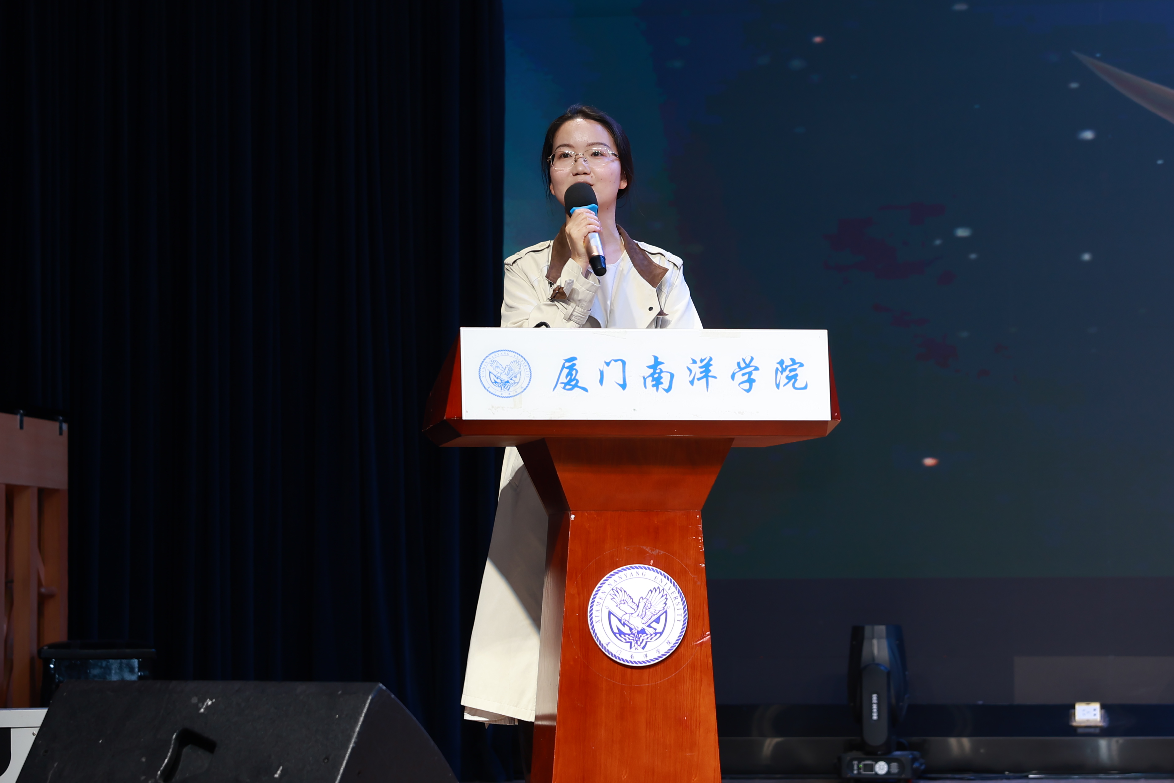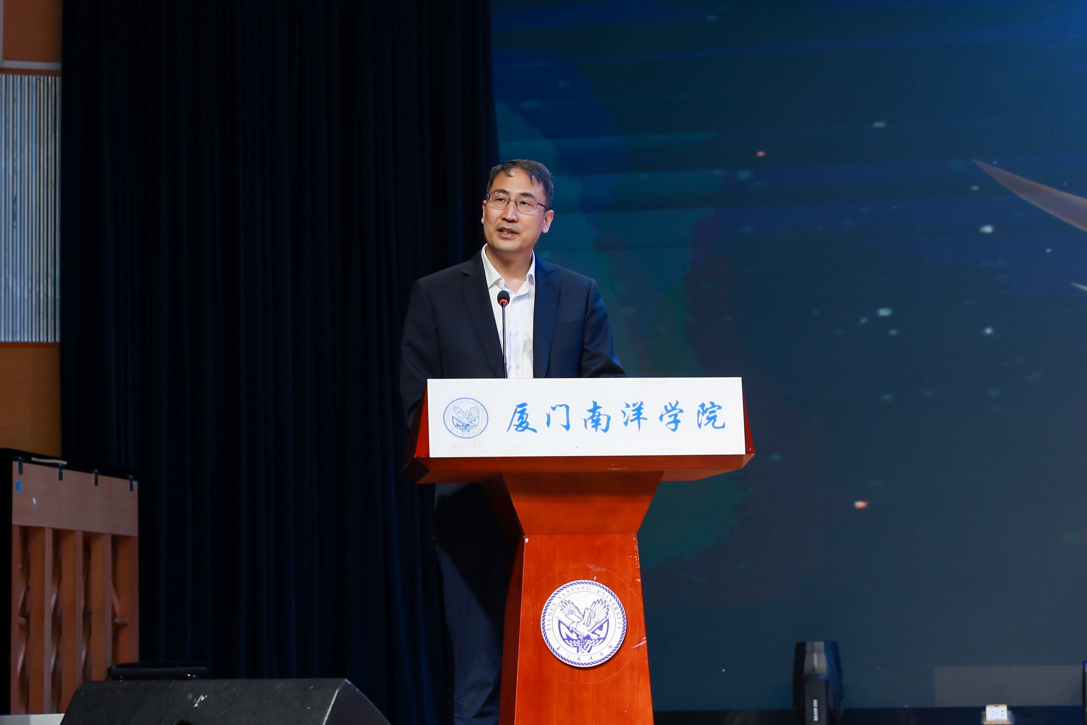 厦门南洋学院校长助理侯红科教授上台为本次活动致辞,他在致辞中提到,AI 技术正以前所未有的速度,深刻重塑着我们生活与工作的每一个角落。它不仅是一项工具,更是一个新的时代坐标。我们身处这个黄金时代,有幸与这场技术变革同频共振,这既是挑战,更是天大的机遇。 年轻人最大的优势,就是敢于突破、勇于创造。企业的活力源于此,你们的成长也源于此。AI 技术为大家搭建了施展才华的广阔舞台,我希望在座的每一位,都能借着这股东风,在专业领域里深耕细作,在比赛中切磋技艺、收获成长。最后预祝本次大赛圆满成功,祝愿每一位创作者都能在舞台上绽放光彩、斩获佳绩。