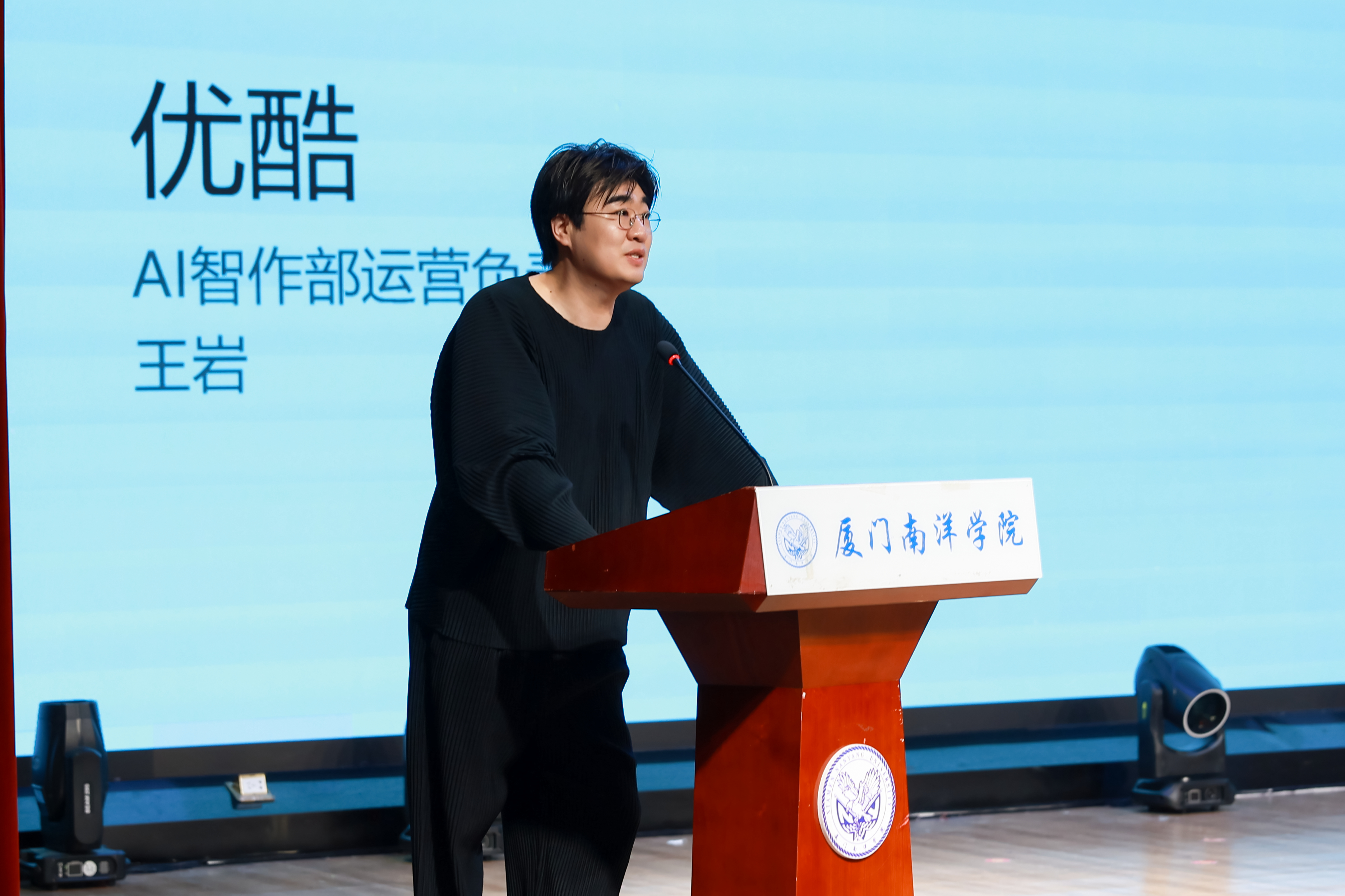 优酷 AI 智作部运营负责人王岩先生上台为本次活动致辞,希望AI 技术正为内容创作带来全新可能,优酷希望借助本次大赛,用 AI 工具降低创作门槛、激发创意活力,鼓励更多年轻人大胆表达、勇敢创作,让好故事被更多人看见。同时他也期待与高校携手,共同挖掘青年创作力量,助力更多创意走向现实。