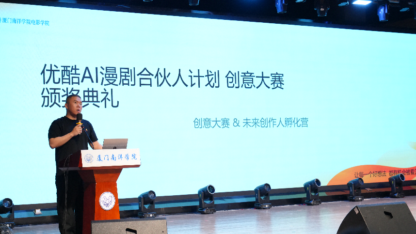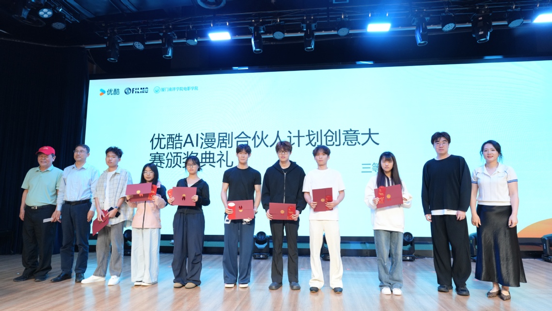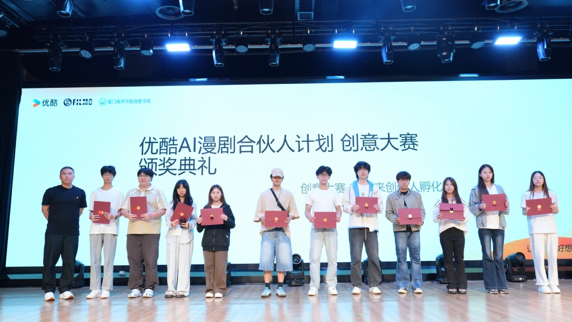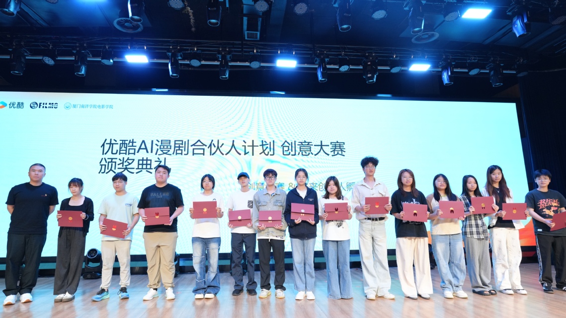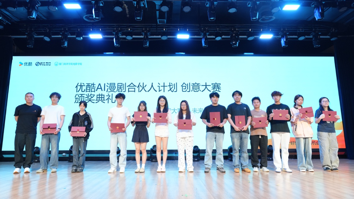 4月10日,优酷AI漫剧合伙人计划创意大赛闭幕式暨颁奖仪式在厦门南洋学院活动中心礼堂举行。本次活动由优酷、厦门壹玖零伍文化传媒有限公司、厦门南洋学院联合主办,旨在鼓励青年学子运用AI技术进行漫剧剧本创作,探索人工智能与影视内容生产的融合路径。