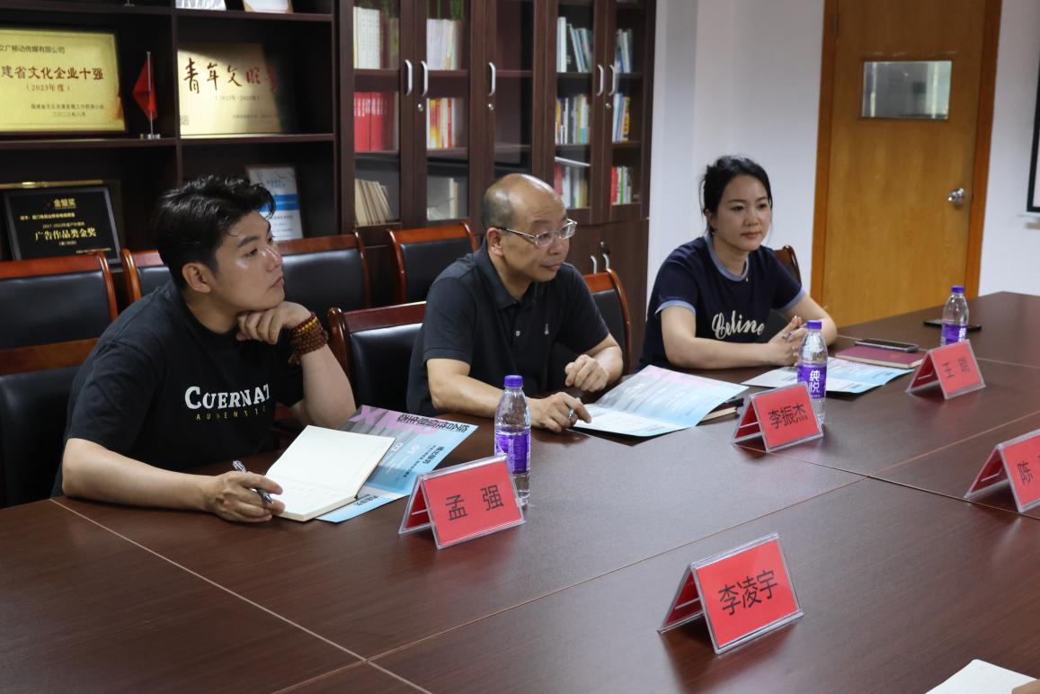 厦门文广移动传媒有限公司副总经理陈青,营销一部主任陈惠娜,营销企划负责人副主任李凌宇,综合部副主任王平对学校一行的到来表示热烈欢迎,并系统介绍了厦门文广移动传媒有限公司发展历程、核心业务、重点项目(短平快项目,无剧集拍摄,影视投资、抖音 “和声计划”、音乐活动、乡村振兴广电下乡项目)的规划。厦门文广移动传媒有限公司部门负责人结合岗位实际,详细说明了行业对专业技能与综合素养的要求,为学校相关专业人才培养方案的优化提供了宝贵建议。